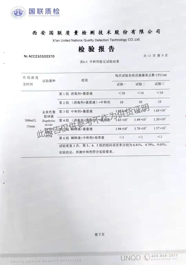 三橋牌過氧乙酸消毒劑(SQ-706型)檢測報告