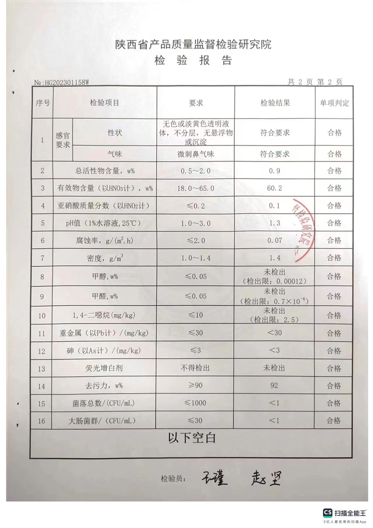 食品工業(yè)酸性清洗劑檢測報告(2023年度)