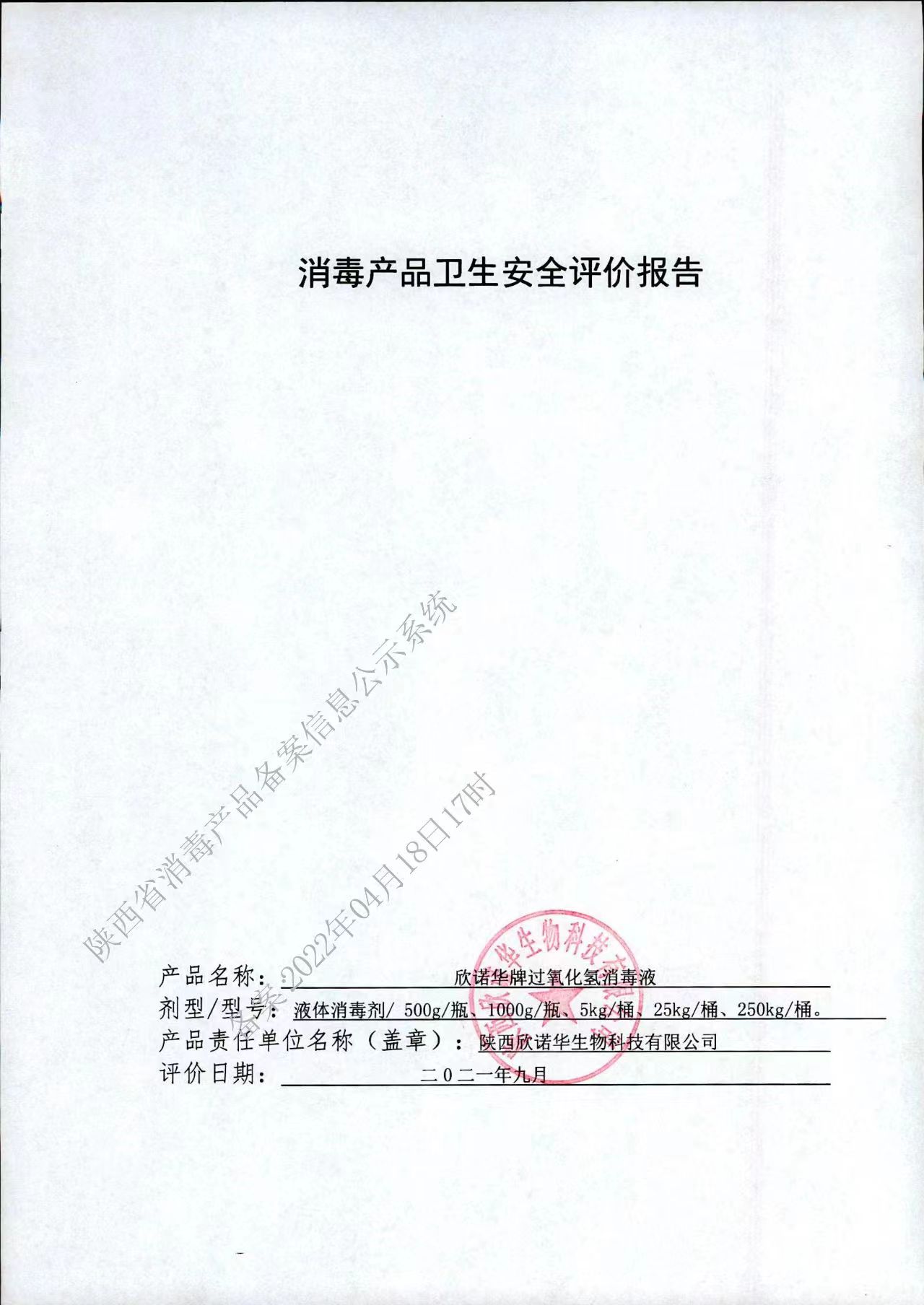 欣諾華牌(食品級雙氧水)過氧化氫消毒液安全評價報告-陜西欣諾華生物科技有限公司
